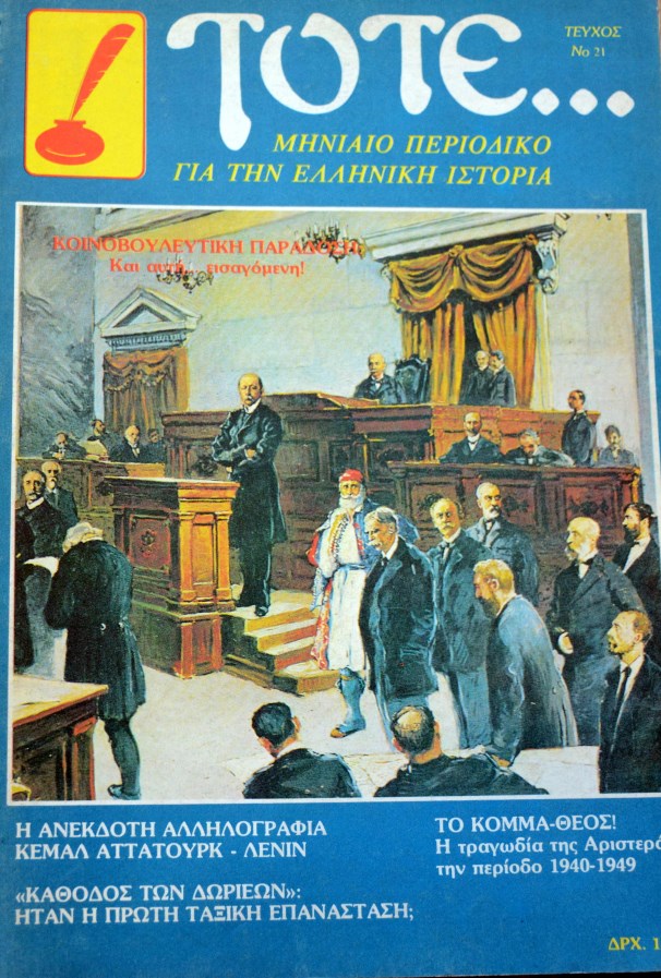 ΤΟΤΕ 21 ΜΗΝΙΑΙΟ ΠΕΡΙΟΔΙΚΟ ΓΙΑ ΤΗΝ ΕΛΛΗΝΙΚΗ ΙΣΤΟΡΙΑ ΚΟΙΝΟΒΟΥΛΕΥΤΙΚΗ ΠΑΡΑΔΟΣΗ ΚΑΙ ΑΥΤΗ ΕΙΣΑΓΟΜΕΝΗ Η ΑΝΕΚΔΟΤΗ ΑΛΛΗΛΟΓΡΑΦΙΑ ΚΕΜΑΛ ΑΤΤΑΤΟΥΡΚ - ΛΕΝΙΝ ΤΟ ΚΟΜΜΑ - ΘΕΟΣ Η ΤΡΑΓΩΔΙΑ ΤΗΣ ΑΡΙΣΤΕΡΑΣ ΤΗΝ ΠΕΡΙΟΔΟ 1940 - 1949 (13.536Α)