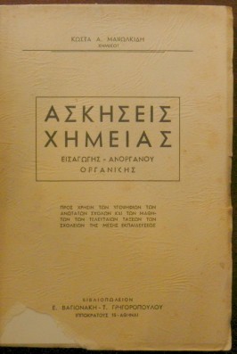 ΑΣΚΗΣΕΙΣ ΧΗΜΕΙΑΣ - ΕΙΣΑΓΩΓΗΣ ΑΝΟΡΓΑΝΟΥ ΟΡΓΑΝΙΚΗΣ (15.703Α)Συγγραφέας: ΜΑΝΩΛΚΙΔΗ ΚΩΣΤΑΣ