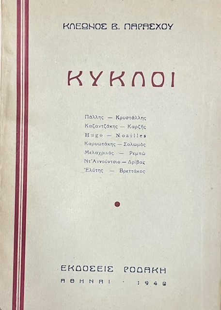 ΚΥΚΛΟΙ - ΠΑΛΛΗΣ - ΚΡΥΣΤΑΛΛΗΣ - ΚΑΖΑΝΤΖΑΚΗΣ - ΚΑΡΖΗΣ - ΟΥΓΚΩ - ΚΑΡΥΩΤΑΚΗΣ - ΣΟΛΩΜΟΣ - ΜΕΛΑΧΡΙΝΟΣ - ΡΕΜΠΩ - ΝΤ' ΑΝΝΟΥΤΣΙΟ - ΔΡΙΒΑΣ - ΕΛΥΤΗΣ - ΒΡΕΤΤΑΚΟΣ (19.737Α)Συγγραφέας: ΠΑΡΑΣΧΟΣ ΚΛΕΩΝ