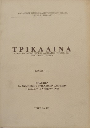 | Εκδοτικός οίκος: | ΦΙΛΟΛΟΓΙΚΟΣ ΙΣΤΟΡΙΚΟΣ ΛΟΓΟΤΕΧΝΙΚΟΣ ΣΥΝΔΕΣΜΟΣ ΤΡΙΚΑΛΩΝ |