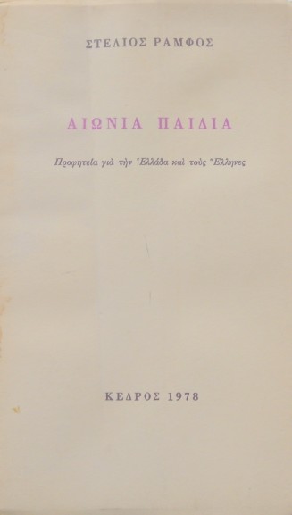 ΑΙΩΝΙΑ ΠΑΙΔΙΑ - ΠΡΟΦΗΤΕΙΑ ΓΙΑ ΤΗΝ ΕΛΛΑΔΑ ΚΑΙ ΤΟΥΣ ΕΛΛΗΝΕΣ (22.029Π)Συγγραφέας: ΡΑΜΦΟΣ ΣΤΕΛΙΟΣ