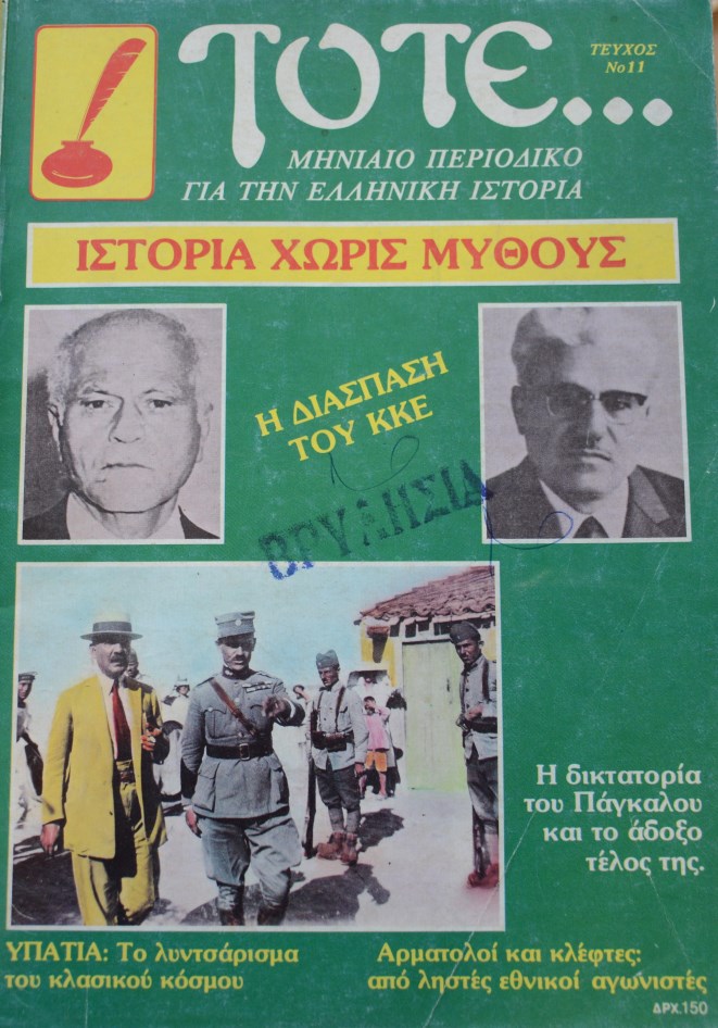 ΤΟΤΕ 11 ΜΗΝΙΑΙΟ ΠΕΡΙΟΔΙΚΟ ΓΙΑ ΤΗΝ ΕΛΛΗΝΙΚΗ ΙΣΤΟΡΙΑ ΙΣΤΟΡΙΑ ΧΩΡΙΣ ΜΥΘΟΥΣ Η ΔΙΑΣΠΑΣΗ ΤΟΥ ΚΚΕ Η ΔΙΚΤΑΤΟΡΙΑ ΤΟΥ ΠΑΓΚΑΛΟΥ ΚΑΙ ΤΟ ΑΔΟΞΟ ΤΕΛΟΣ ΤΗΣ (25.066Α)