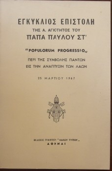 ΕΓΚΥΚΛΙΟΣ ΕΠΙΣΤΟΛΗ ΤΗΣ Α. ΑΓΙΟΤΗΤΟΣ ΤΟΥ ΠΑΠΑ ΠΑΥΛΟΥ ΣΤ΄POPULORUM PROGRESSIO ΠΕΡΙ ΤΗΣ ΣΥΜΒΟΛΗΣ ΠΑΝΤΩΝ ΕΙΣ ΤΗΝ ΑΝΑΠΤΥΞΙΝ ΤΩΝ ΛΑΩΝ (29.049Α)