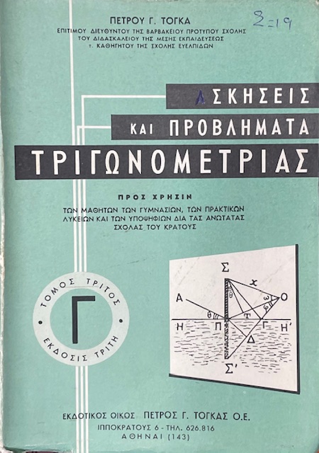ΑΣΚΗΣΕΙΣ ΚΑΙ ΠΡΟΒΛΗΜΑΤΑ ΤΡΙΓΩΝΟΜΕΤΡΙΑΣ ΤΟΜΟΣ ΤΡΙΤΟΣ (32.254Α)Συγγραφέας: ΤΟΓΚΑΣ ΠΕΤΡΟΣ