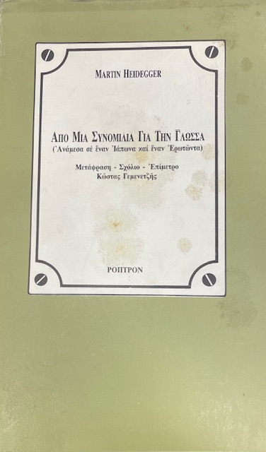 ΑΠΟ ΜΙΑ ΣΥΝΟΜΙΛΙΑ ΓΙΑ ΤΗΝ ΓΛΩΣΣΑ (33.017Π)Συγγραφέας: HEIDEGGER MARTIN (ΧΑΙΝΤΕΓΓΕΡ ΜΑΡΤΙΝ)