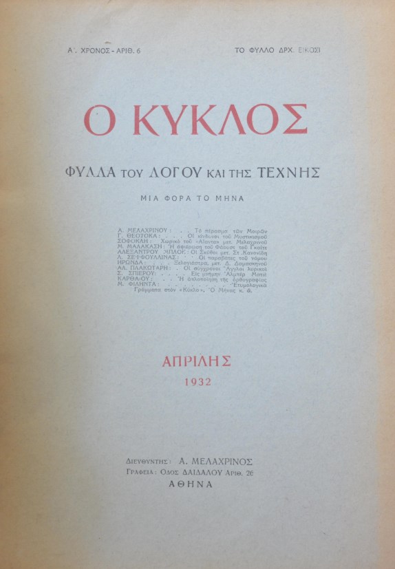 Ο ΚΥΚΛΟΣ 6 ΑΠΡΙΛΗΣ 1932 ΦΥΛΛΑ ΤΟΥ ΛΟΓΟΥ ΚΑΙ ΤΗΣ ΤΕΧΝΗΣ (40.040Π)