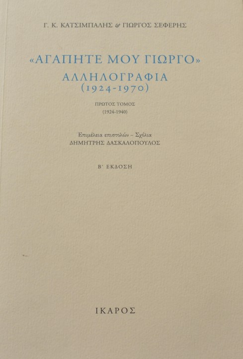 ΑΓΑΠΗΤΕ ΜΟΥ ΓΙΩΡΓΟ ΑΛΛΗΛΟΓΡΑΦΙΑ 1924 - 1970 ΤΟΜΟΙ 2 (40.225Π)Συγγραφέας: ΚΑΤΣΙΜΠΑΛΗΣ Κ. Γ. - ΣΕΦΕΡΗΣ ΓΙΩΡΓΟΣ