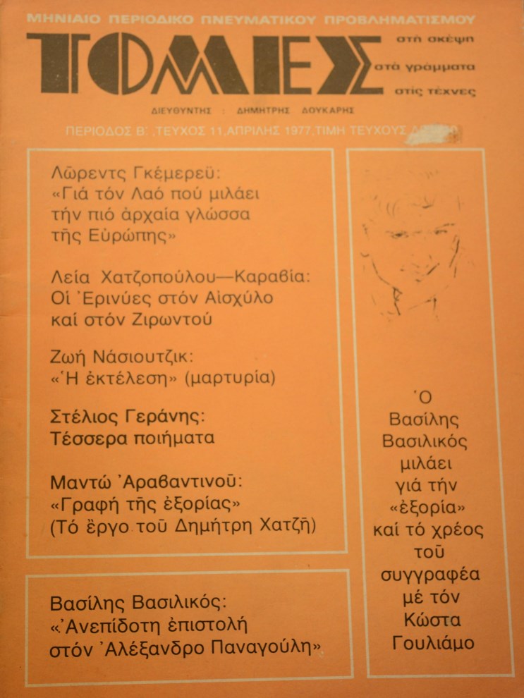 ΤΟΜΕΣ 11 ΠΕΡΙΟΔΟΣ Β Ο ΒΑΣΙΛΗΣ ΒΑΣΙΛΙΚΟΣ ΜΙΛΑΕΙ ΓΙΑ ΤΗΝ ΕΞΟΡΙΑ ΚΑΙ ΤΟ ΧΡΕΟΣ ΤΟΥ ΣΥΓΓΡΑΦΕΑ ΜΕ ΤΟΝ ΚΩΣΤΑ ΓΟΥΛΙΑΜΟ (40.960Α)