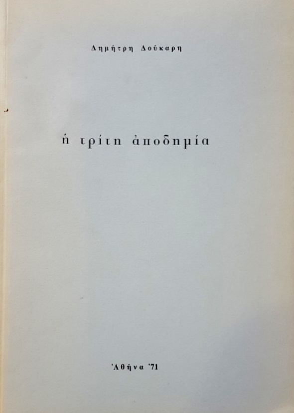 Η ΤΡΙΤΗ ΑΠΟΔΗΜΙΑ (50.290Π)Συγγραφέας: ΔΟΥΚΑΡΗΣ ΔΗΜΗΤΡΗΣ