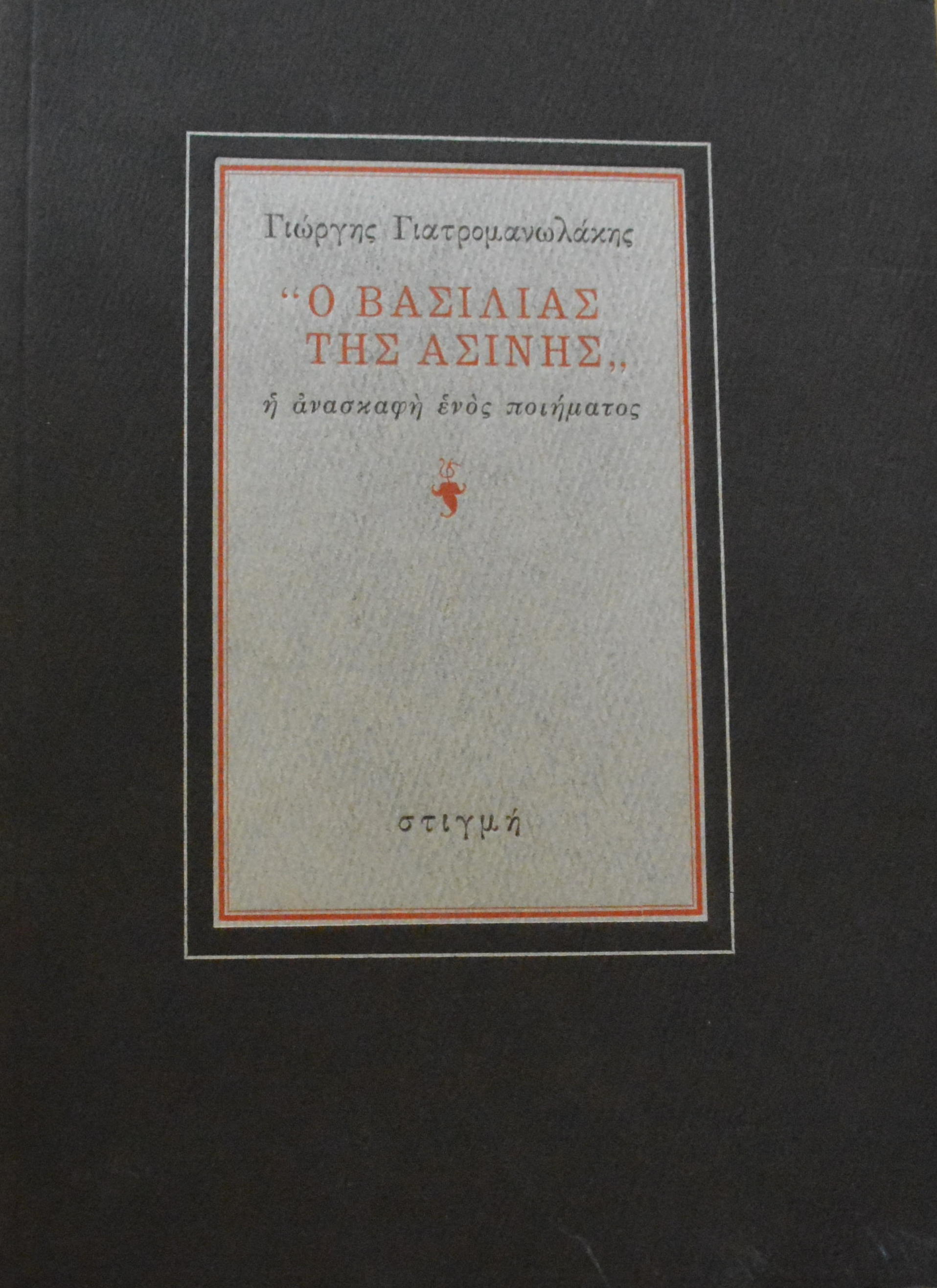 Ο ΒΑΣΙΛΙΑΣ ΤΗΣ ΑΣΙΝΗΣ Η ΑΝΑΣΚΑΦΗ ΕΝΟΣ ΠΟΙΗΜΑΤΟΣ (64.282Α)Συγγραφέας: ΓΙΑΤΡΟΜΑΝΩΛΑΚΗΣ ΓΙΩΡΓΗΣ