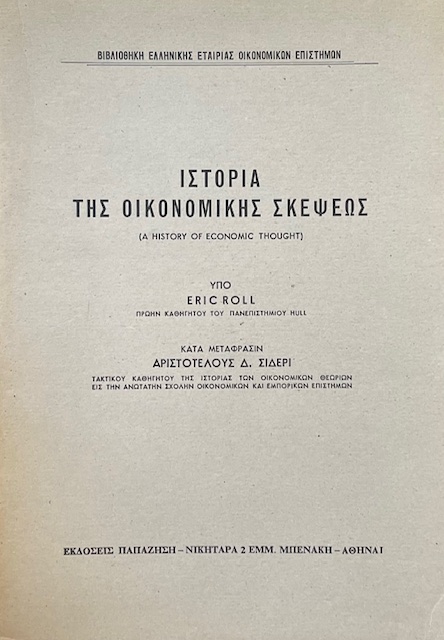 ΙΣΤΟΡΙΑ ΤΗΣ ΟΙΚΟΝΟΜΙΚΗΣ ΣΚΕΨΕΩΣ (72.786Α)Συγγραφέας: ROLL ERIC