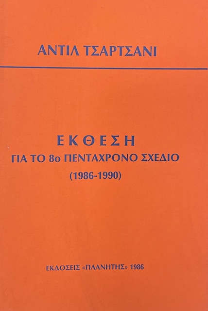 ΕΚΘΕΣΗ ΓΙΑ ΤΟ 8ο ΠΕΝΤΑΧΡΟΝΟ ΣΧΕΔΙΟ 1986 - 1990 (75.047Α)Συγγραφέας: ΤΣΑΡΤΣΑΝΙ ΑΝΤΙΛ