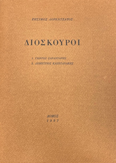 ΔΙΟΣΚΟΥΡΟΙ ΓΙΩΡΓΟΣ ΣΑΡΑΝΤΑΡΗΣ ΔΗΜΗΤΡΙΟΣ ΚΑΠΕΤΑΝΑΚΗΣ (75.293Α)Συγγραφέας: ΛΟΡΕΝΤΖΑΤΟΣ ΖΗΣΙΜΟΣ