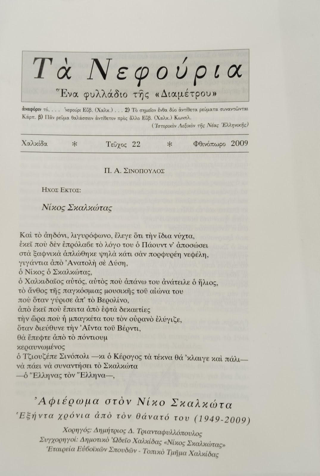 ΤΑ ΝΕΦΟΥΡΙΑ ΕΝΑ ΦΥΛΛΑΔΙΟ ΤΗΣ "ΔΙΑΜΕΤΡΟΥ" ΤΕΥΧΟΣ 22 ΑΦΙΕΡΩΜΑ ΣΤΟΝ ΝΙΚΟ ΣΚΑΛΚΩΤΑ (75.413Α)Συγγραφέας: ΔΙΑΦΟΡΟΙ