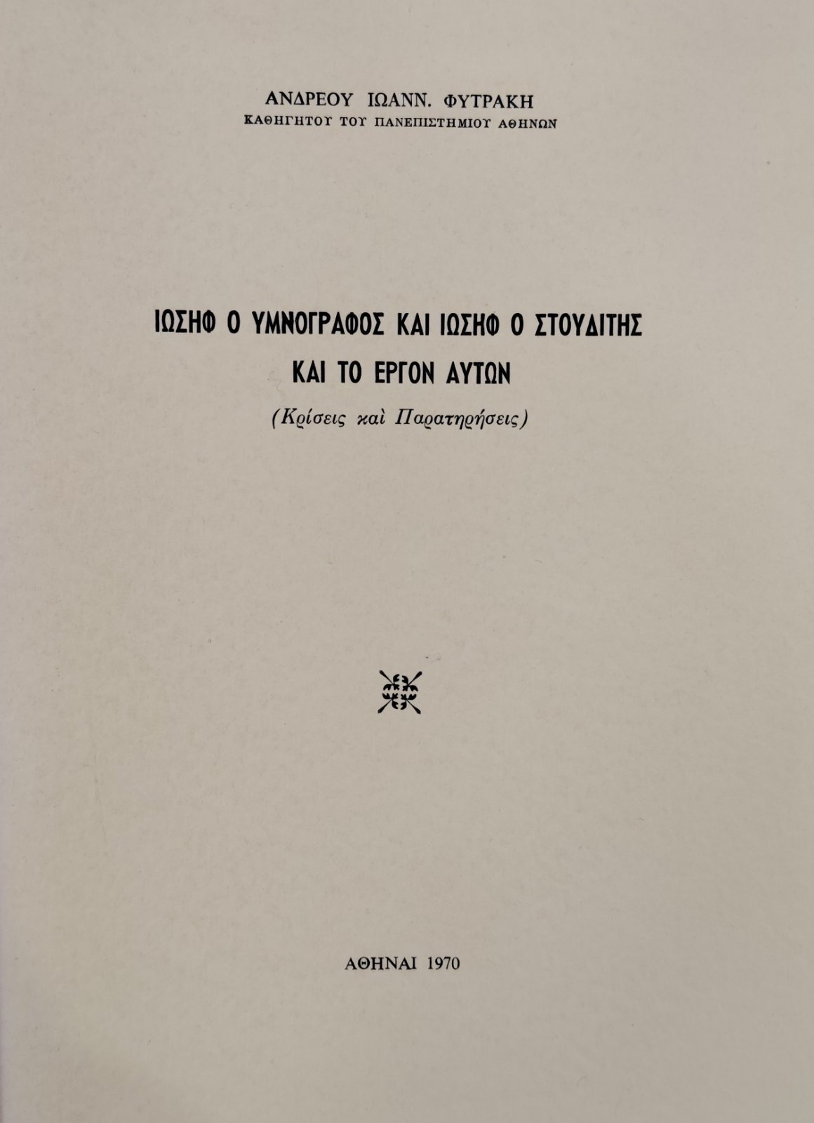 ΙΩΣΗΦ Ο ΥΜΝΟΓΡΑΦΟΣ ΚΑΙ ΙΩΣΗΦ Ο ΣΤΟΥΔΙΤΗΣ ΚΑΙ ΤΟ ΕΡΓΟΝ ΑΥΤΩΝ (75.612Α)Συγγραφέας: ΦΥΤΡΑΚΗΣ Ι. ΑΝΔΡΕΑΣ