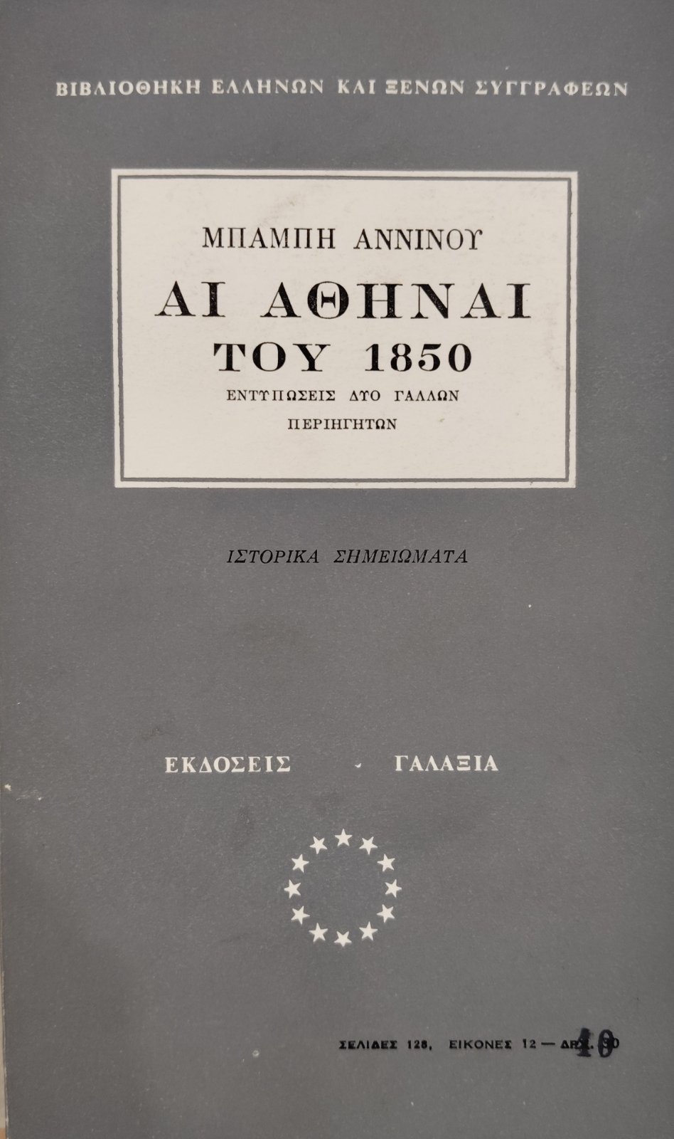 ΑΙ ΑΘΗΝΑΙ ΤΟΥ 1850 ΕΝΤΥΠΩΣΕΙΣ ΔΥΟ ΓΑΛΛΩΝ ΠΕΡΙΗΓΗΤΩΝ (76.012Α)Συγγραφέας: ΑΝΝΙΝΟΣ ΜΠΑΜΠΗΣ