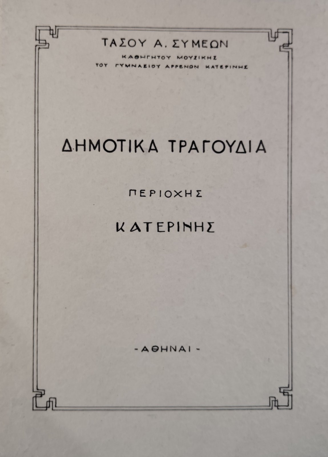 ΔΗΜΟΤΙΚΑ ΤΡΑΓΟΥΔΙΑ ΠΕΡΙΟΧΗΣ ΚΑΤΕΡΙΝΗΣ (76.015Α)Συγγραφέας: ΣΥΜΕΩΝ Α. ΤΑΣΟΣ