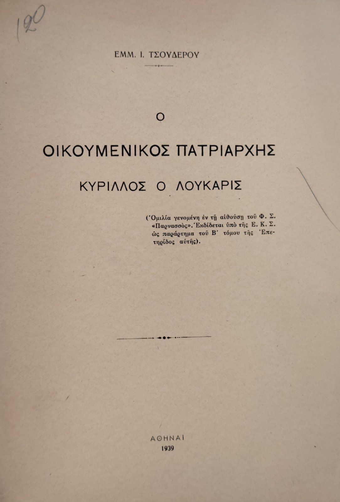 Ο ΟΙΚΟΥΜΕΝΙΚΟΣ ΠΑΤΡΙΑΡΧΗΣ ΚΥΡΙΛΛΟΣ Ο ΛΟΥΚΑΡΙΣ (76.062Α)Συγγραφέας: ΤΣΟΥΔΕΡΟΣ Ι. ΕΜΜΑΝΟΥΗΛ